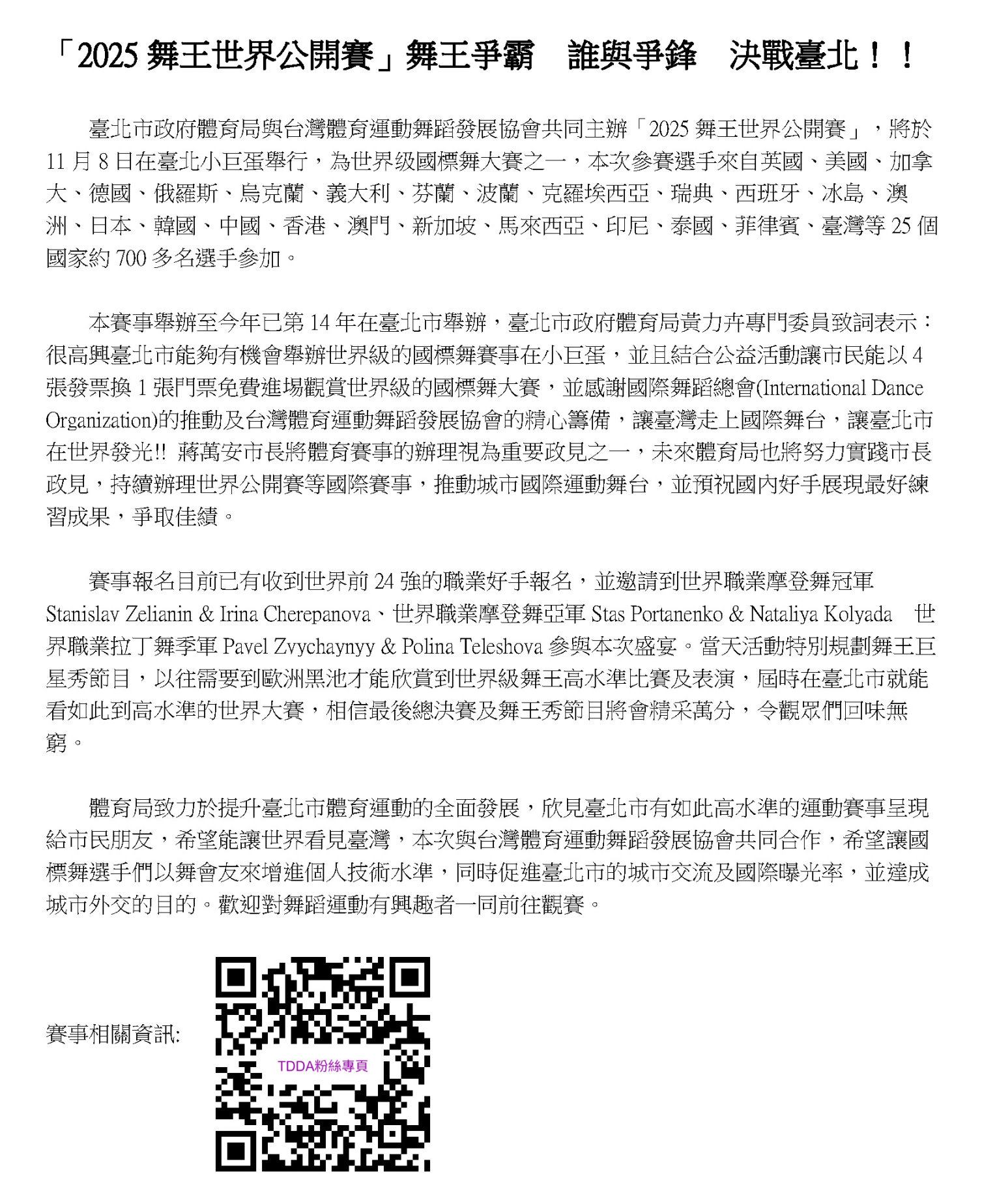 ★ 2025舞王世界公開賽 舞王爭霸 誰與爭鋒 決戰臺北!