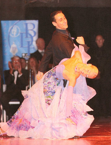 來自美國Giampiero Giannico & Anna Mikhed。慢狐步。期望在觀眾中的年青舞者能夠感受到這些優質。好的音樂運用在他們優質慢狐步中,舞蹈中具佳的動作與典雅性。